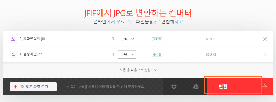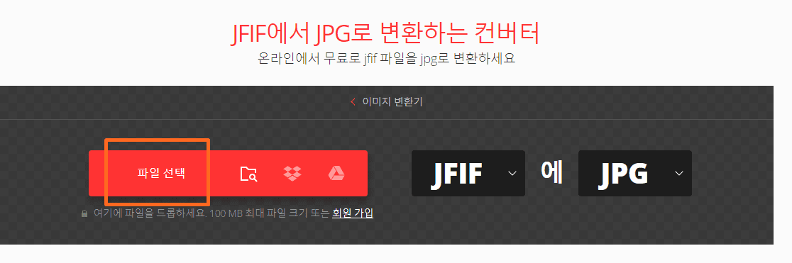 무료 사이트 이용하여 JFIF -> JPG 파일 유형 변경